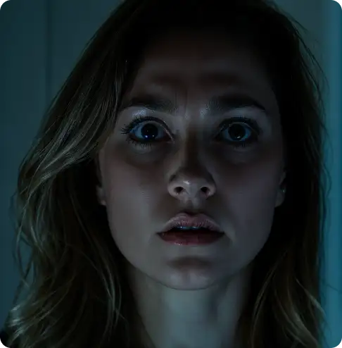 O mesmo prompt foi aplicado e a ideia foi simular atmosfera de um filme de terror. Note que o Midjourney gerou uma imagem mais artística sem se preocupar exatamente com o fato da pessoa ser bonita ou a imagem ser agradável. Já o Visual Electric, apesar de trazer essa atmosfera de filme de terror, gerou uma modelo, digamos, mais “padrão”.