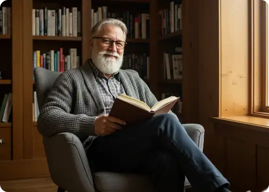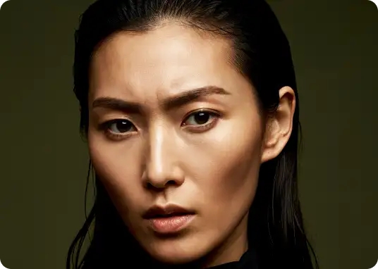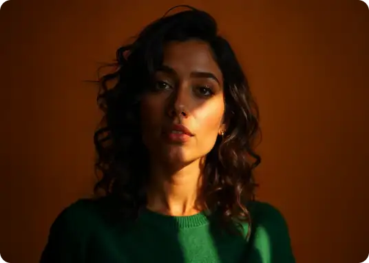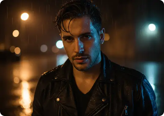 Por exemplo: ao invés de descrever a luz apenas com o termo top light, descreva assim: Lit with a single, centrally positioned top light, casting dramatic shadows under his eyebrows, nose, and chin. The focused top-down illumination sculpts his facial features with high contrast and depth.