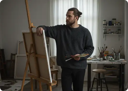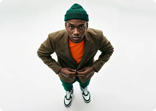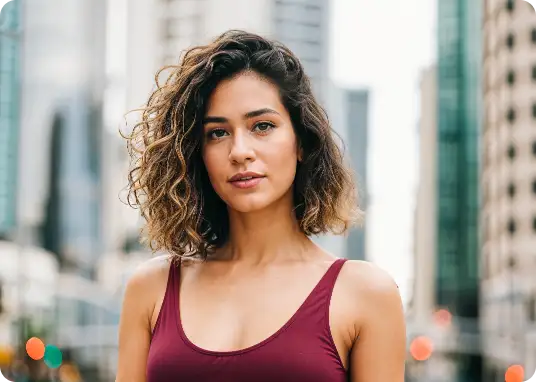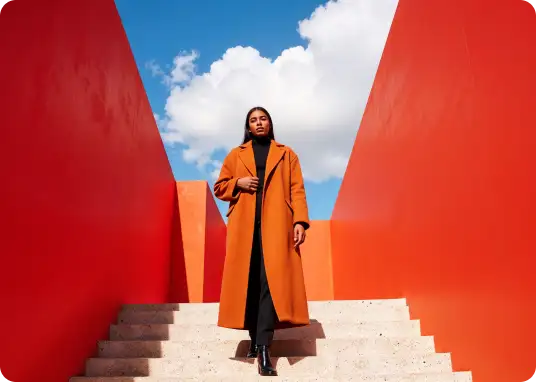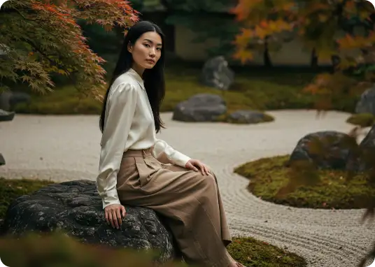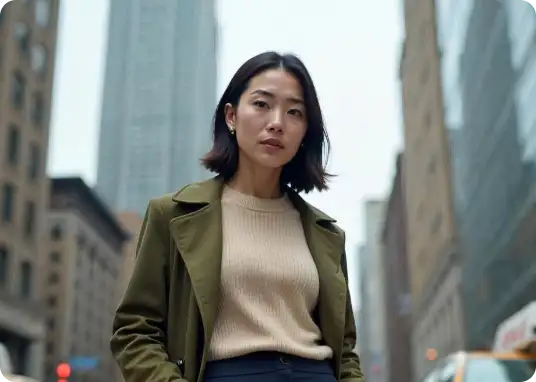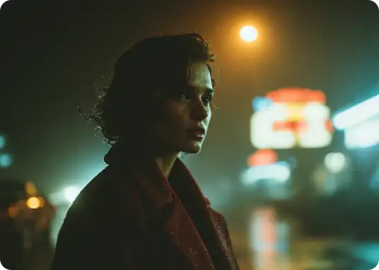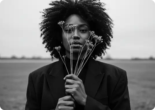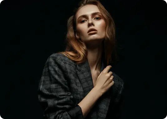 Profundidade de campo rasa com fundo desfocado. Transmite foco no sujeito, elegância e separação visual, criando hierarquia clara.